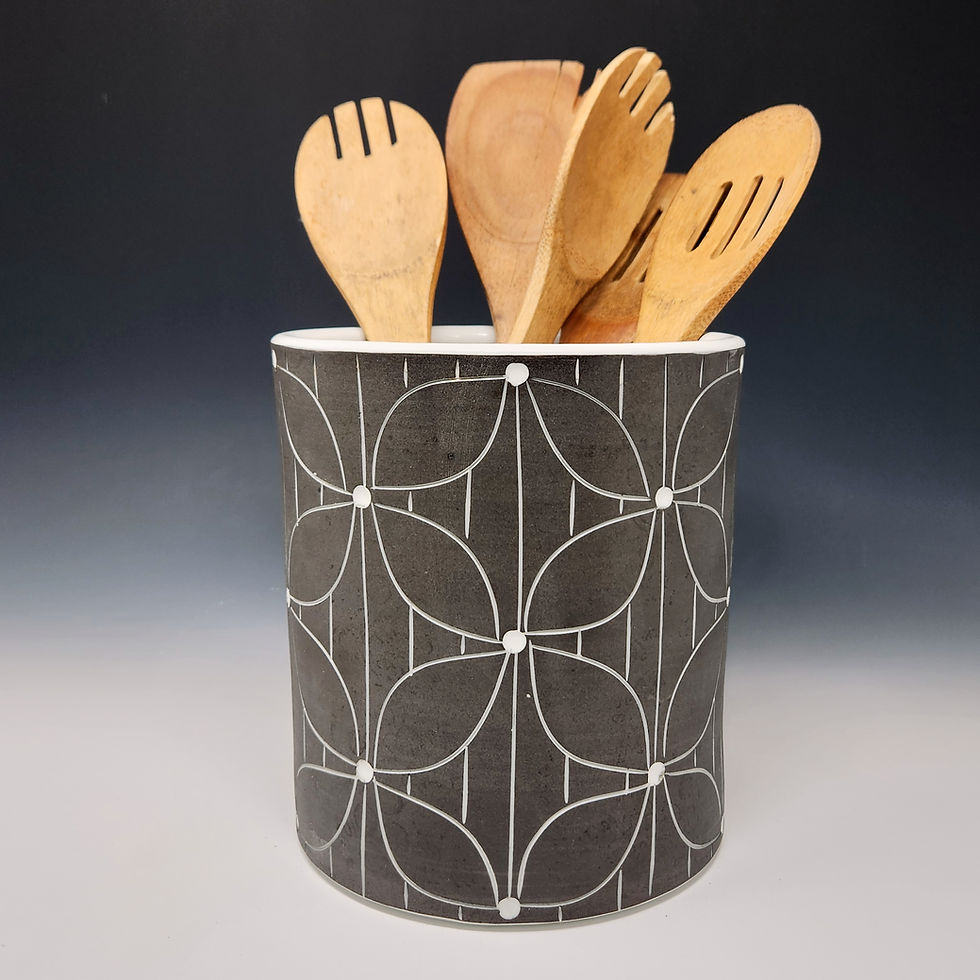 Flower with Lines (black) Utensil Holder