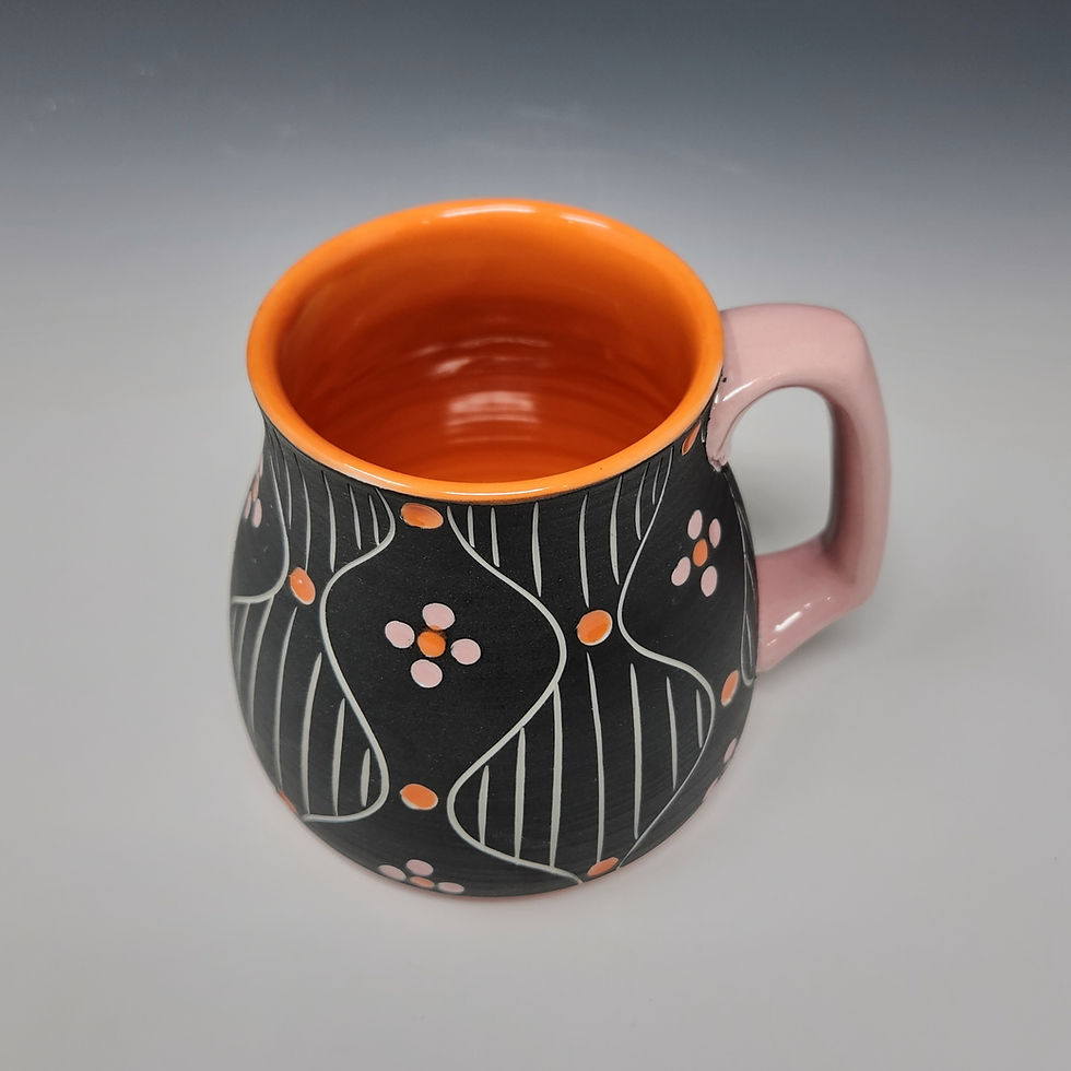 Small Vase with Mid Century Modern Pattern and Pink and Teal Glaze